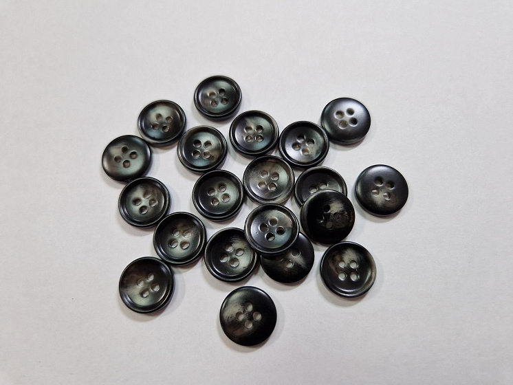 Пуговица костюмная пластик 4 прокола d-15мм черно-серая Арт. F-5933