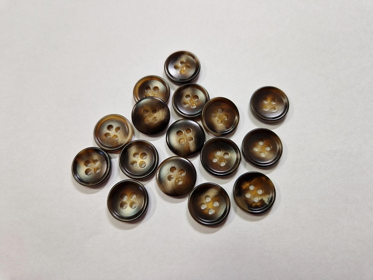 Пуговица костюмная пластик 4 прокола d-15мм коричневая с бежевыми вкраплениями - цена 30 ₽ У нас самые доступные цены на в Москве, доставка по всей России - интернет магазин тканей Тессутидея. Артикул товара для заказа - F-5893. Страна производства ткани – Италия. Ширина этого материала - . Состав - Пластик. Наличие остатков на складе - 10