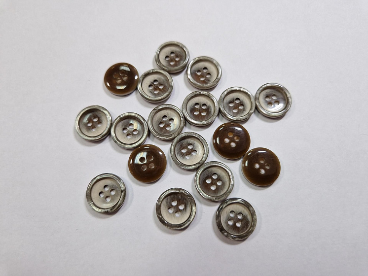 Пуговица костюмная пластик 4 прокола d-15мм коричнево-молочная с перламутровым ободком - цена 35 ₽ У нас самые доступные цены на Пластик в Москве, доставка по всей России - интернет магазин тканей Тессутидея. Артикул товара для заказа - F-6025. Страна производства ткани – Италия. Ширина этого материала - . Состав - Пластик. Наличие остатков на складе - 1983