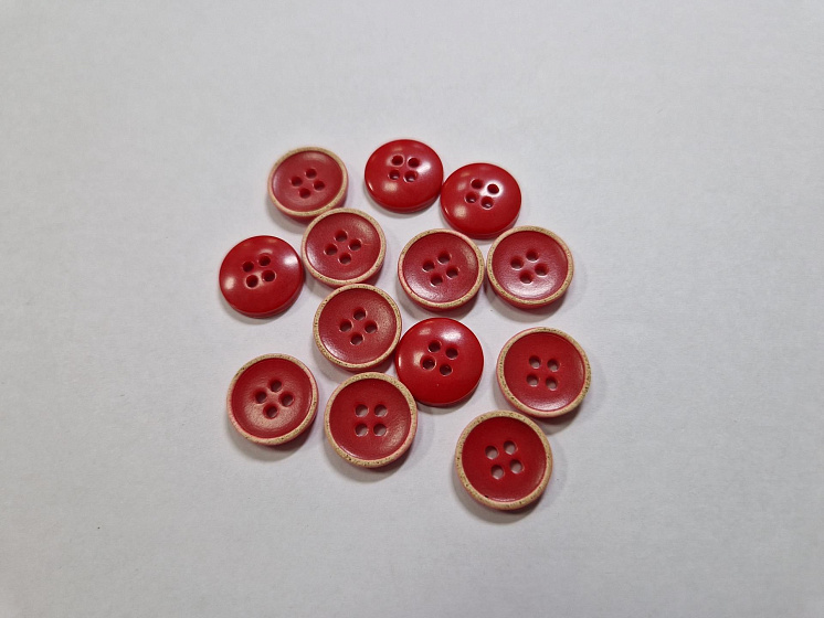 Пуговица костюмная пластик 4 прокола d-15мм красная с молочным ободком Арт. F-5980