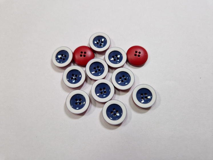 Пуговица костюмная пластик 4 прокола d-15мм красно-сине-белая Арт. F-6013