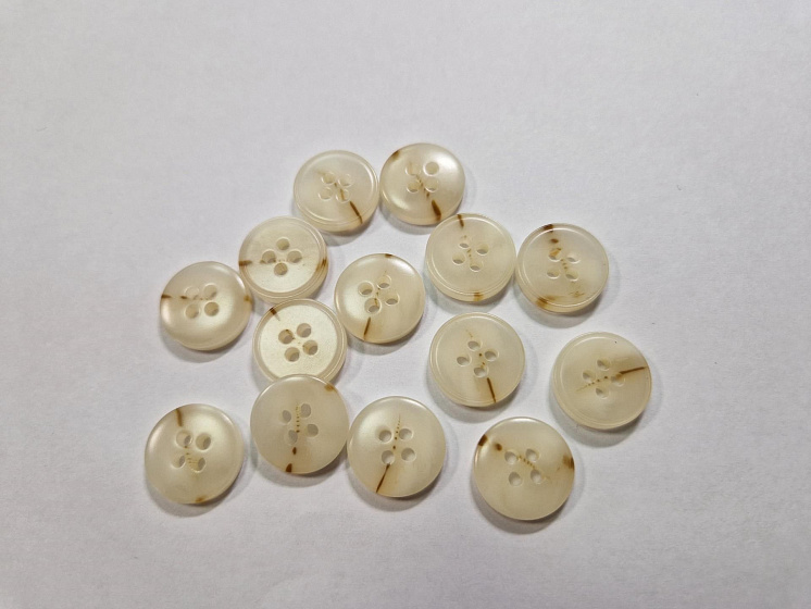 Пуговица костюмная пластик 4 прокола d-15мм молочная с коричневыми вкраплениями Арт. F-5925