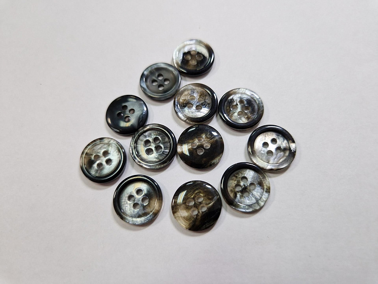 Пуговица костюмная пластик 4 прокола d-15мм серо-черная Арт. F-5957