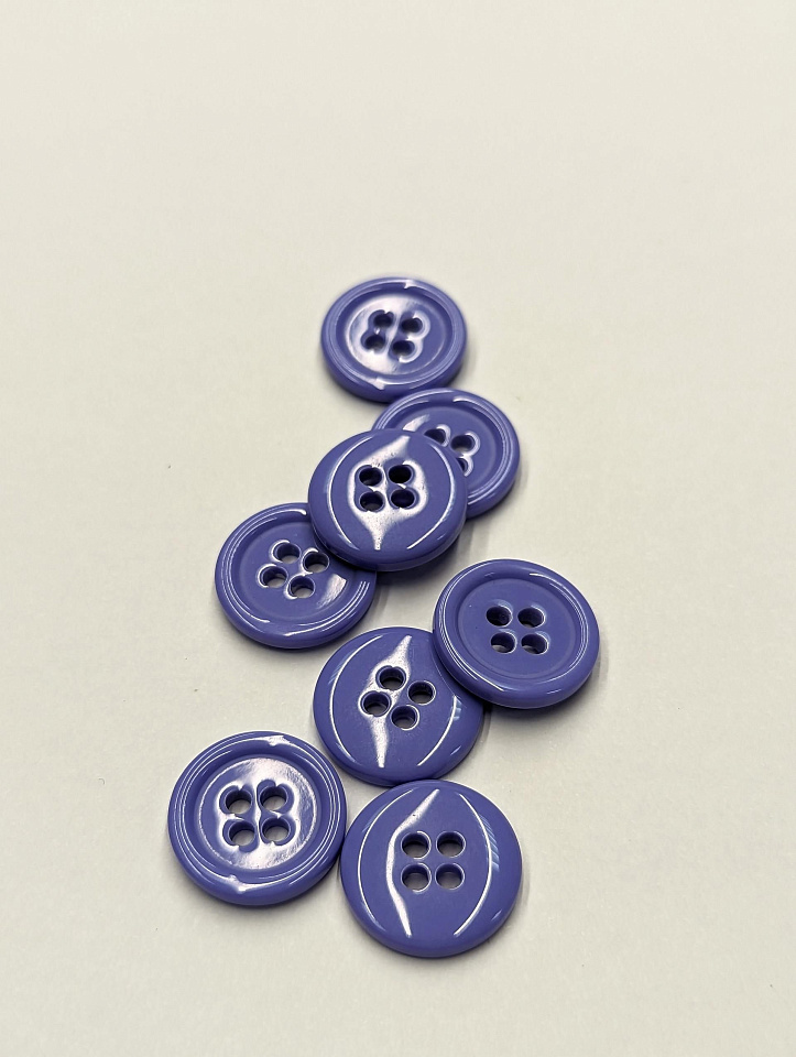 Пуговица костюмная пластик 4 прокола d-15мм сиреневая Арт. F-6079