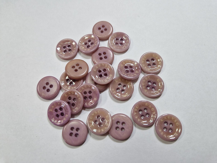 Пуговица костюмная пластик 4 прокола d-15мм светло-бежево-сиреневая Арт. F-5996