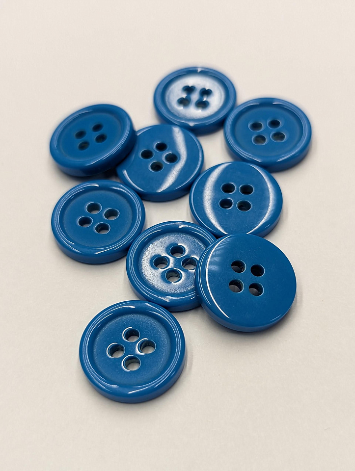 Пуговица костюмная пластик 4 прокола d-15мм темно-голубая Арт. F-6076
