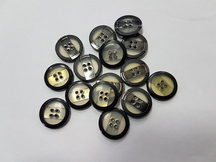 Пуговица костюмная пластик 4 прокола d-19мм с черным ободком и металлической полосой Roberto Cavall Арт. F-4865