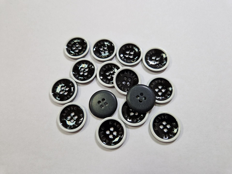 Пуговица костюмная пластик 4 прокола d-20мм черная с белым ободком Арт. F-5983