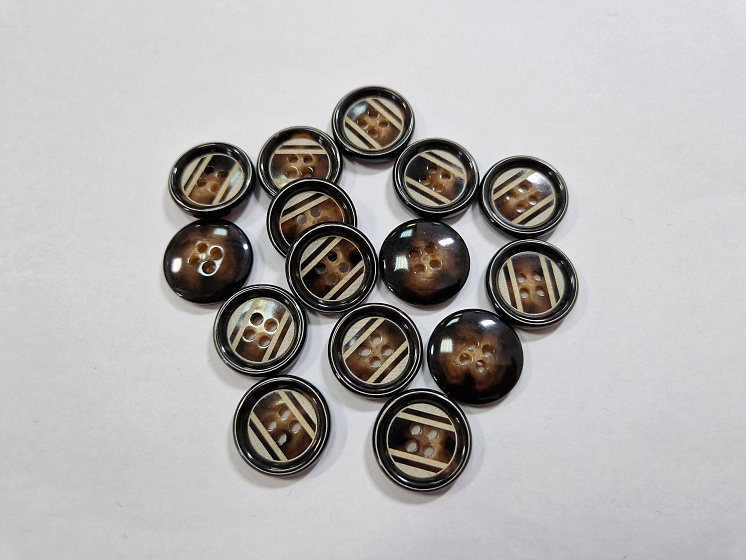 Пуговица костюмная пластик 4 прокола d-20мм коричневая с молочными полосами Арт. F-6008