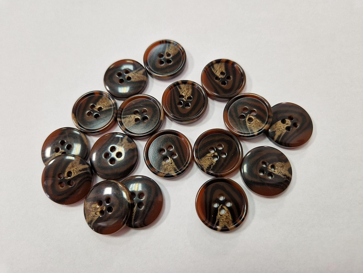 Пуговица костюмная пластик 4 прокола d-20мм коричневая с прожилками Арт. F-5827