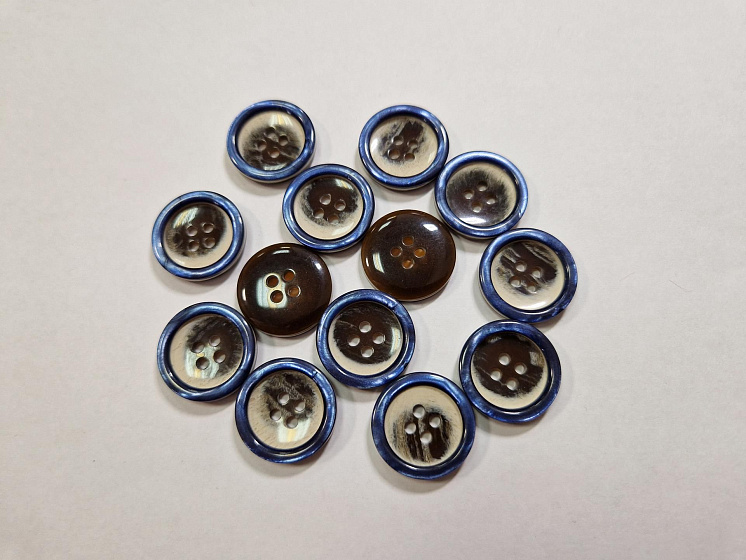 Пуговица костюмная пластик 4 прокола d-20мм коричнево-белая с синим перламутровым ободком Арт. F-6024