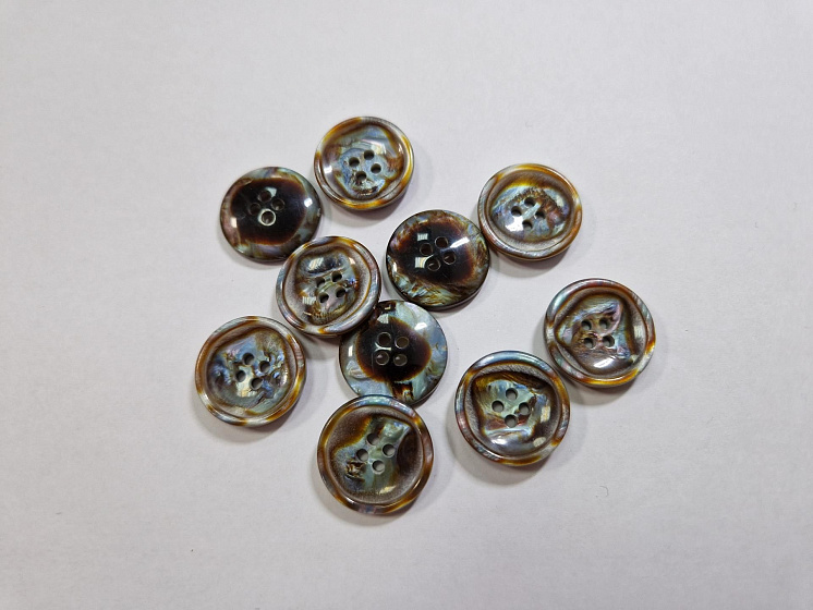 Пуговица костюмная пластик 4 прокола d-20мм коричнево-голубая перламутровая Арт. F-6016