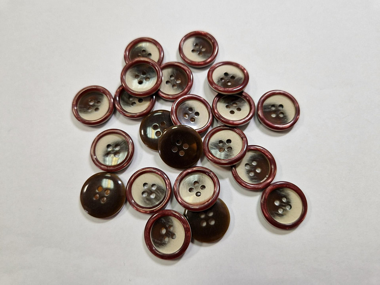 Пуговица костюмная пластик 4 прокола d-20мм коричнево-молочная с бордовым ободком Арт. F-6010