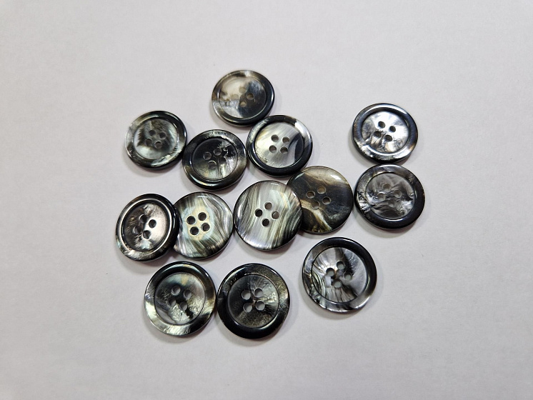 Пуговица костюмная пластик 4 прокола d-20мм серо-черная Арт. F-5956