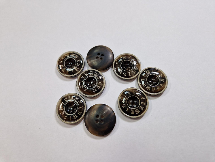 Пуговица костюмная пластик 4 прокола d-20мм темно-коричневая с циферблатом Арт. F-6003