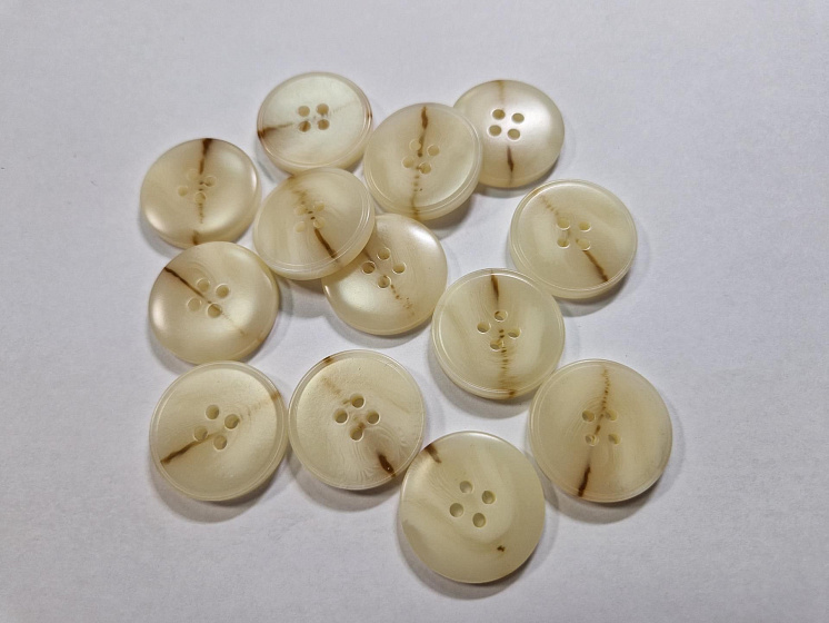 Пуговица костюмная пластик 4 прокола d-28мм молочная с коричневыми вкраплениями Арт. F-5922