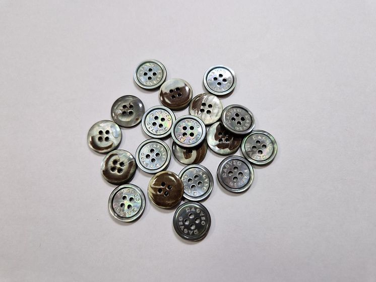 Пуговица костюмная ракушка 4 прокола d-15мм серая - цена 40 ₽ У нас самые доступные цены на Ракушка в Москве, доставка по всей России - интернет магазин тканей Тессутидея. Артикул товара для заказа - F-5976. Страна производства ткани – Италия. Ширина этого материала - . Состав - Ракушка. Наличие остатков на складе - 500