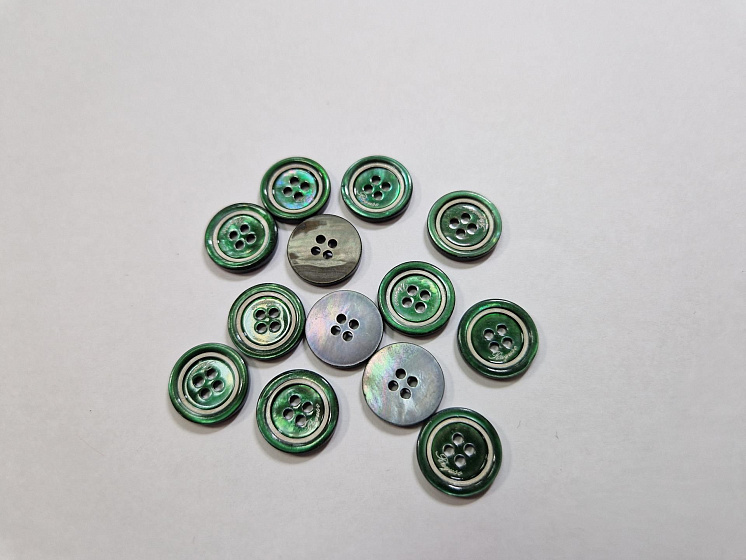 Пуговица костюмная ракушка 4 прокола d-15мм зеленая с серебряным ободком с надписью - цена 40 ₽ У нас самые доступные цены на в Москве, доставка по всей России - интернет магазин тканей Тессутидея. Артикул товара для заказа - F-5992. Страна производства ткани – Италия. Ширина этого материала - . Состав - Ракушка. Наличие остатков на складе - 856