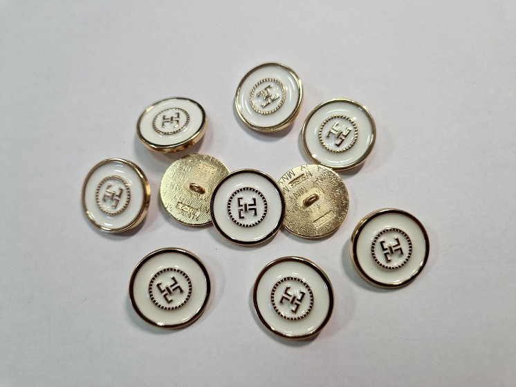 Пуговица металл бронза на ножке d-22мм белая глазированная с логотипом - цена 300 ₽ У нас самые доступные цены на Металл в Москве, доставка по всей России - интернет магазин тканей Тессутидея. Артикул товара для заказа - F-5814. Страна производства ткани – Италия. Ширина этого материала - . Состав - Металл. Наличие остатков на складе - 5