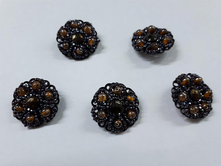 Пуговица металл никель на ножке d-24мм фактурная коричневая Арт. F-4147