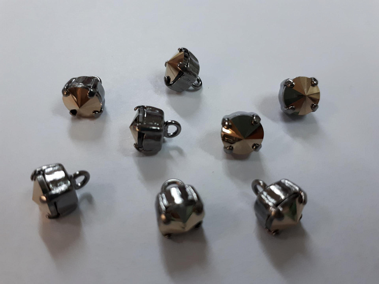 Пуговица металл никель на ножке d-8мм с желтым стразом Swarovski Арт. F-4136