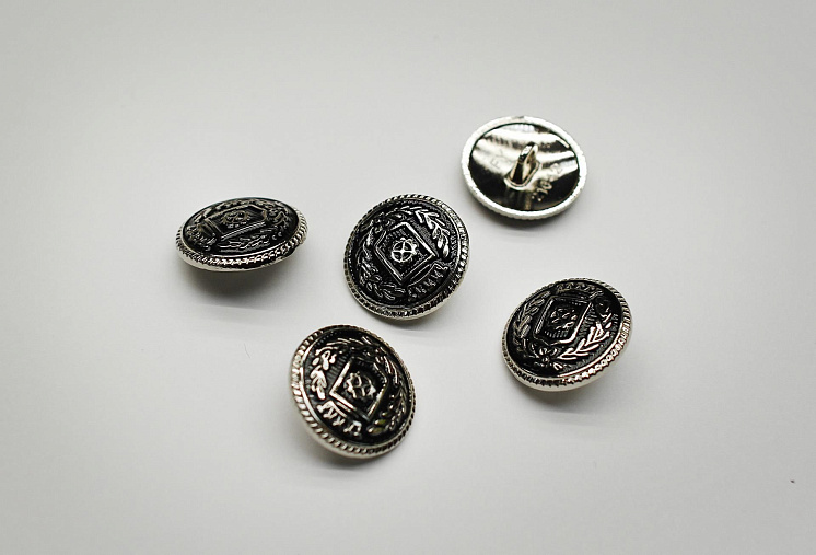 Пуговица металл серебро на ножке d-18мм черно-серебряная геральдика - цена 150 ₽ У нас самые доступные цены на Металл в Москве, доставка по всей России - интернет магазин тканей Тессутидея. Артикул товара для заказа - F-7031. Страна производства ткани – Италия. Ширина этого материала - . Состав - Металл. Наличие остатков на складе - 31