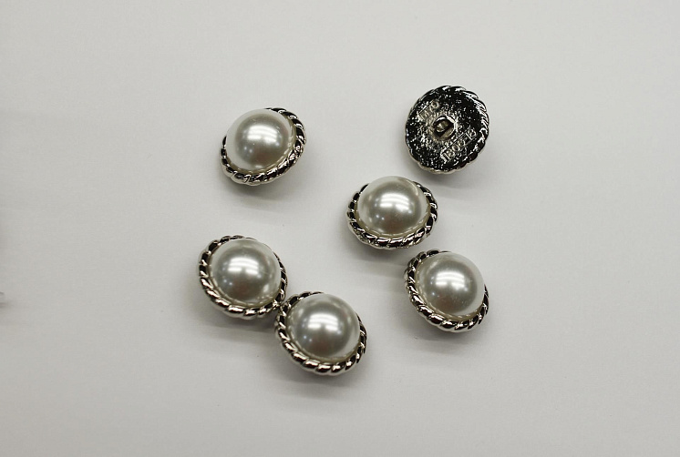 Пуговица металл серебро на ножке d-18мм с жемчужной вставкой - цена 200 ₽ У нас самые доступные цены на Металл в Москве, доставка по всей России - интернет магазин тканей Тессутидея. Артикул товара для заказа - F-6995. Страна производства ткани – Италия. Ширина этого материала - . Состав - Металл, пластик. Наличие остатков на складе - 44