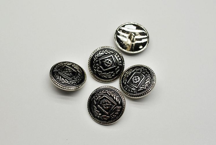 Пуговица металл серебро на ножке d-23мм черно-серебряная геральдика - цена 200 ₽ У нас самые доступные цены на Металл в Москве, доставка по всей России - интернет магазин тканей Тессутидея. Артикул товара для заказа - F-7030. Страна производства ткани – Италия. Ширина этого материала - . Состав - Металл. Наличие остатков на складе - 8