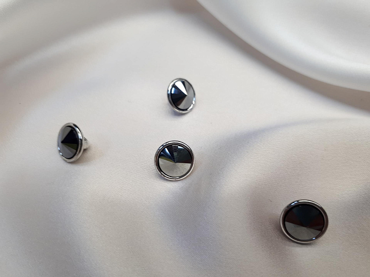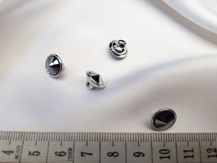 Пуговица металл серебро на ножке со серым стразом Swarovski d-10мм - цена 250 ₽ У нас самые доступные цены на в Москве, доставка по всей России - интернет магазин тканей Тессутидея. Артикул товара для заказа - F-3896. Страна производства ткани – Италия. Ширина этого материала - . Состав - Металл. Наличие остатков на складе - 32