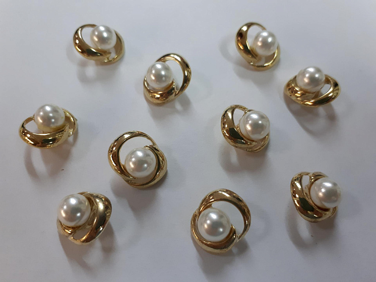 Пуговица металл золото на ножке d-16мм с жемчужиной Арт. F-4155