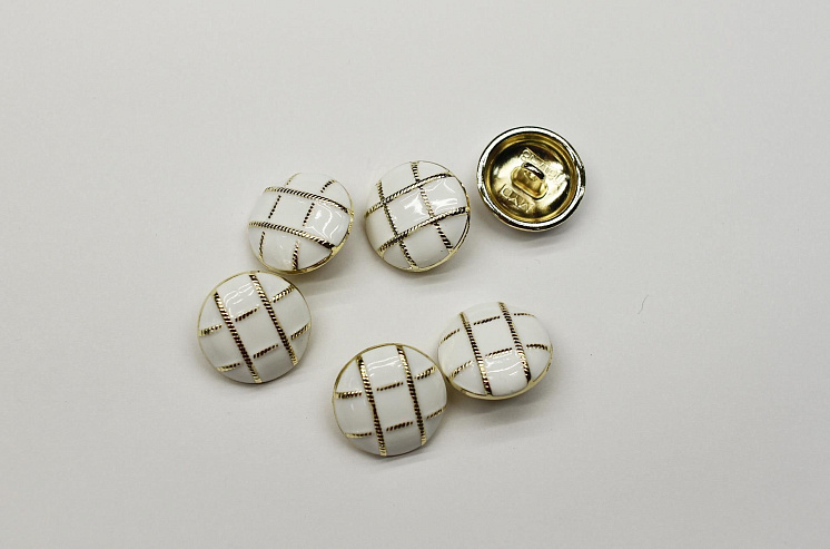 Пуговица металл золото на ножке d-18мм бело-золотая - цена 250 ₽ У нас самые доступные цены на в Москве, доставка по всей России - интернет магазин тканей Тессутидея. Артикул товара для заказа - F-7023. Страна производства ткани – Италия. Ширина этого материала - . Состав - Металл. Наличие остатков на складе - 35