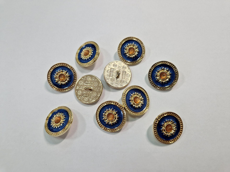 Пуговица металл золото на ножке d-20мм синяя с бежевой вставкой - цена 250 ₽ У нас самые доступные цены на Металл в Москве, доставка по всей России - интернет магазин тканей Тессутидея. Артикул товара для заказа - F-5809. Страна производства ткани – Италия. Ширина этого материала - . Состав - Металл. Наличие остатков на складе - 35