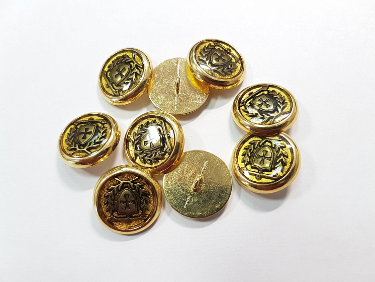 Пуговица металл золото на ножке d-23мм с геральдикой - цена 200 ₽ У нас самые доступные цены на Металл в Москве, доставка по всей России - интернет магазин тканей Тессутидея. Артикул товара для заказа - F-5602. Страна производства ткани – Италия. Ширина этого материала - . Состав - Металл. Наличие остатков на складе - 2