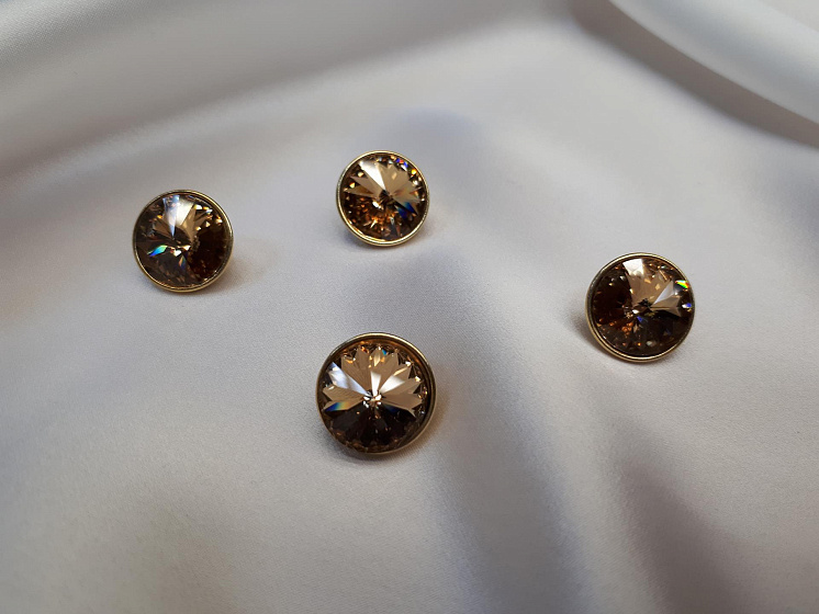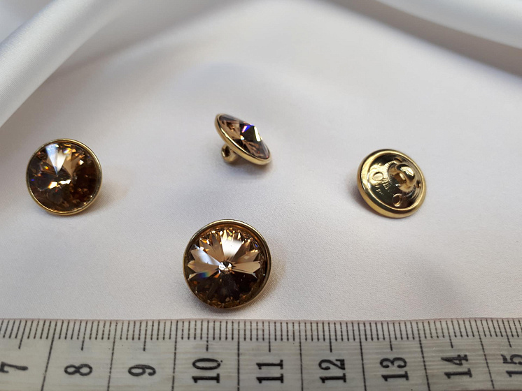 Пуговица металл золото на ножке с крупным бежевым стразом Swarovski d-16мм - цена 600 ₽ У нас самые доступные цены на в Москве, доставка по всей России - интернет магазин тканей Тессутидея. Артикул товара для заказа - F-3898. Страна производства ткани – Италия. Ширина этого материала - . Состав - Металл. Наличие остатков на складе - 20