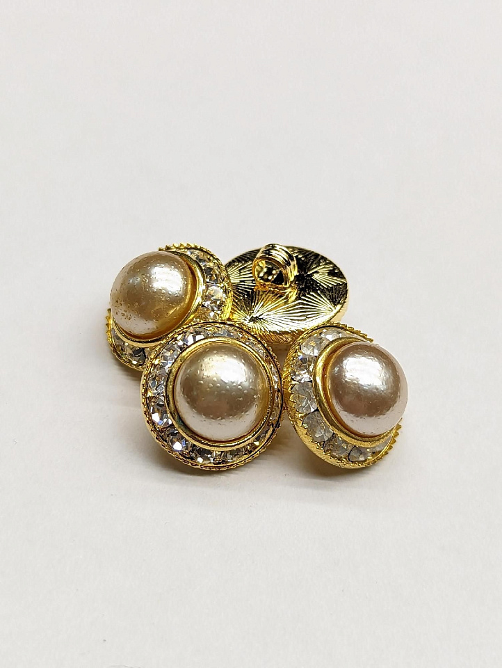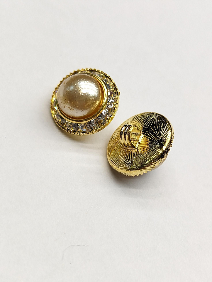 Пуговица на ножке металл золото с жемчугом и стразами d-16mm Арт. F-2851