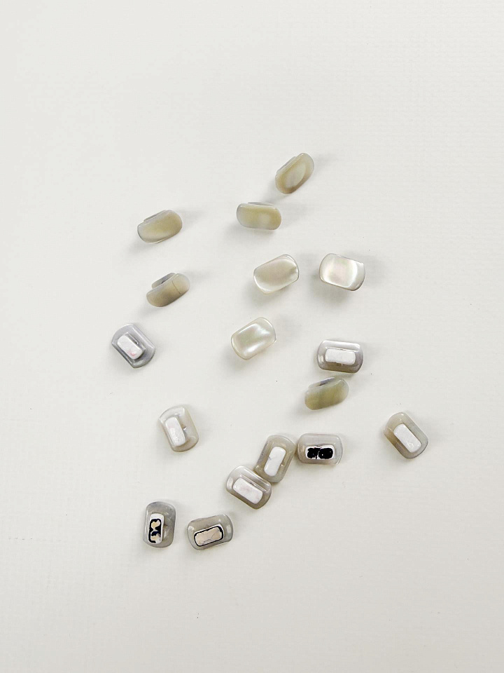 Пуговица на ножке прямоугольная серо-молочная перламутровая - цена 100 ₽ У нас самые доступные цены на в Москве, доставка по всей России - интернет магазин тканей Тессутидея. Артикул товара для заказа - F-7237. Страна производства ткани – Италия. Ширина этого материала - . Состав - Ракушка. Наличие остатков на складе - 98