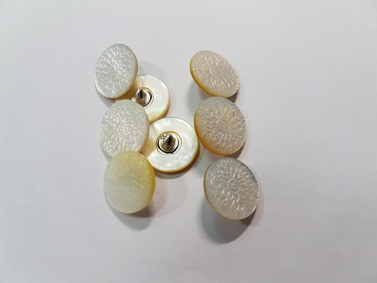 Пуговица перламутр на ножке d-15мм белая фактурная - цена 200 ₽ У нас самые доступные цены на Пуговицы и кнопки в Москве, доставка по всей России - интернет магазин тканей Тессутидея. Артикул товара для заказа - F-5598. Страна производства ткани – Италия. Ширина этого материала - . Состав - . Наличие остатков на складе - 50