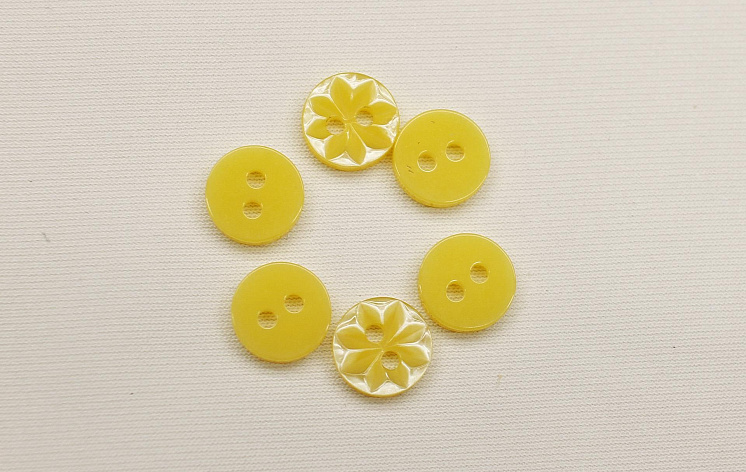 Пуговица пластик 2 прокола d-11мм желтая фантазийная - цена 20 ₽ У нас самые доступные цены на в Москве, доставка по всей России - интернет магазин тканей Тессутидея. Артикул товара для заказа - F-6576. Страна производства ткани – Италия. Ширина этого материала - . Состав - Пластик. Наличие остатков на складе - 302