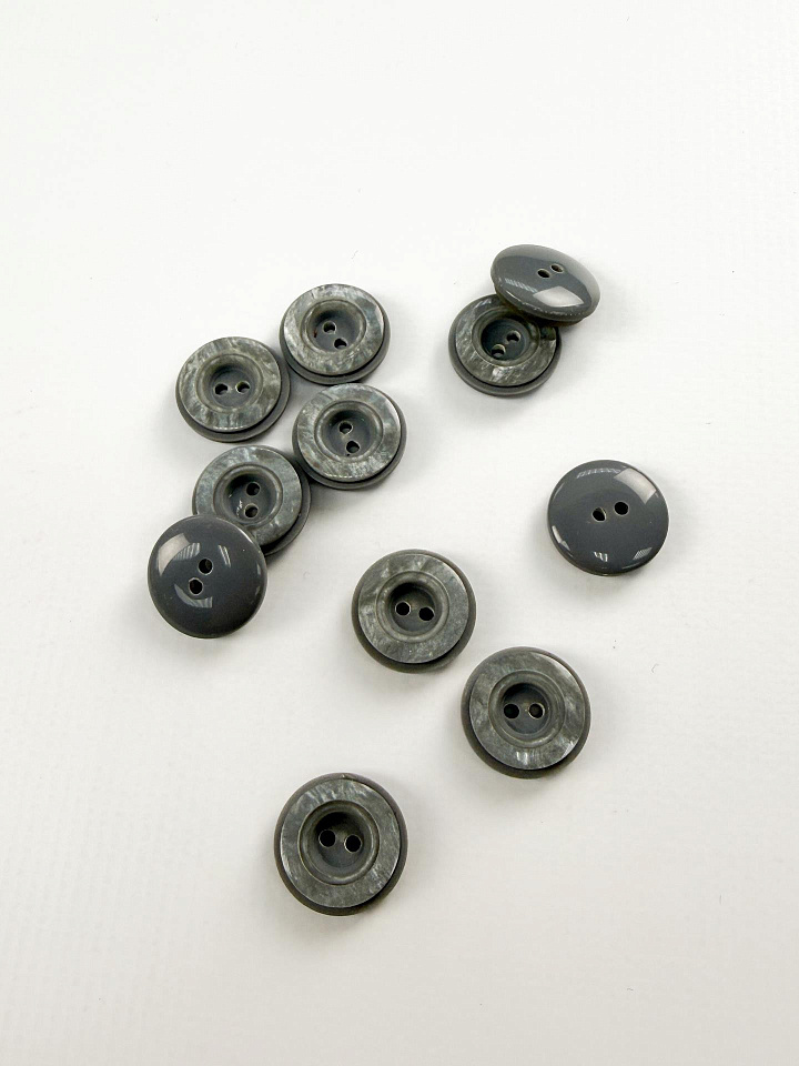 Пуговица пластик 2 прокола d-18мм серая с широким ободком Арт. F-7256