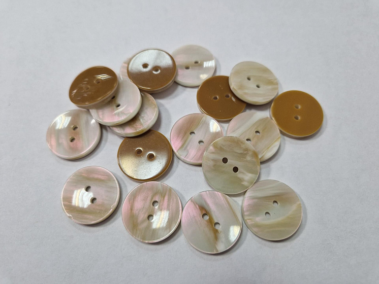 Пуговица пластик 2 прокола d-22мм бело-бежево-розовая Арт. F-5766