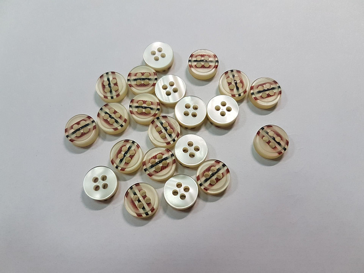 Пуговица пластик 4 прокола d-10мм молочная с красно-зелеными полосками - цена 25 ₽ У нас самые доступные цены на в Москве, доставка по всей России - интернет магазин тканей Тессутидея. Артикул товара для заказа - F-5462. Страна производства ткани – Италия. Ширина этого материала - . Состав - Пластик. Наличие остатков на складе - 139