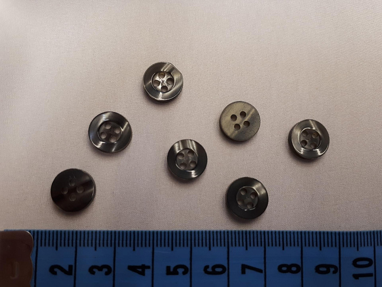 Пуговица пластик 4 прокола d-11мм темно-серая с ободком Арт. F-3927
