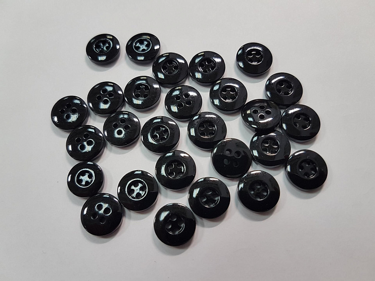 Пуговица пластик 4 прокола d-12мм черная Арт. F-5439
