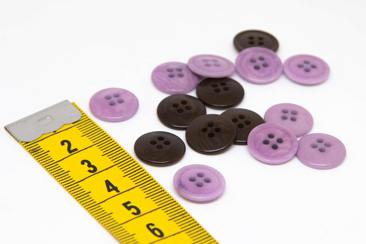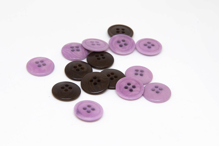 Пуговица пластик 4 прокола d-12мм темно-коричневая, сиреневая Арт. F-4628