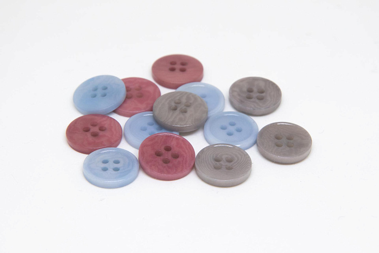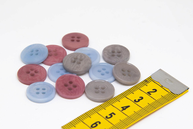 Пуговица пластик 4 прокола d-14мм голубая,антико,серая Арт. F-4603