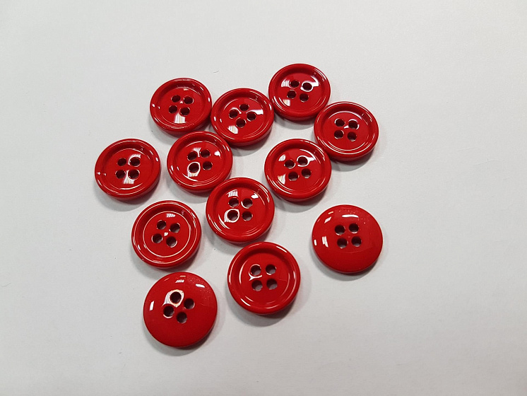 Пуговица пластик 4 прокола d-14мм красная Арт. F-5436