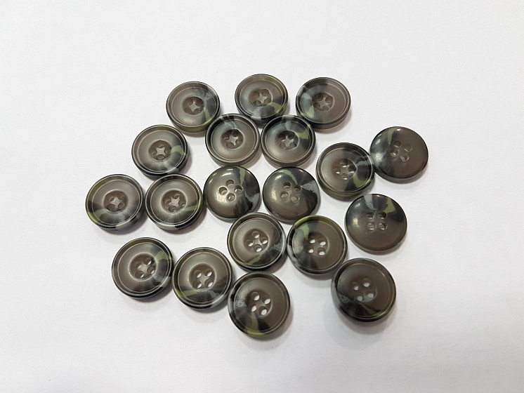 Пуговица пластик 4 прокола d-14мм серая с зелеными прожилками Арт. F-4908