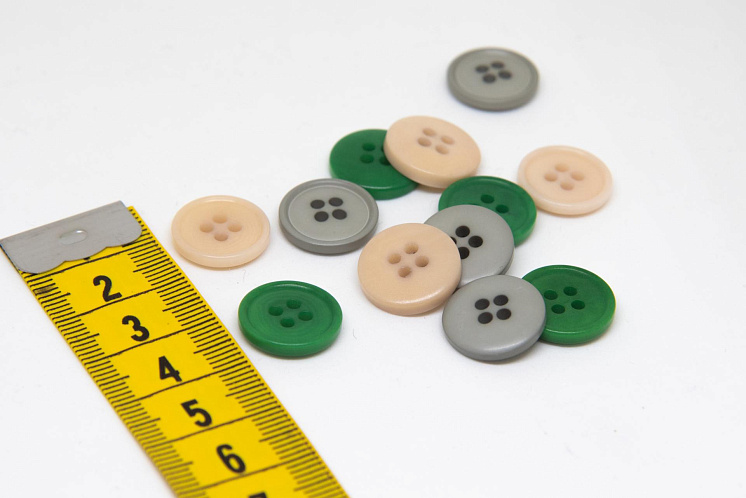 Пуговица пластик 4 прокола d-14мм серая, зеленая, бежевая - цена 20 ₽ У нас самые доступные цены на в Москве, доставка по всей России - интернет магазин тканей Тессутидея. Артикул товара для заказа - F-4648. Страна производства ткани – Италия. Ширина этого материала - . Состав - Пластик. Наличие остатков на складе - 363