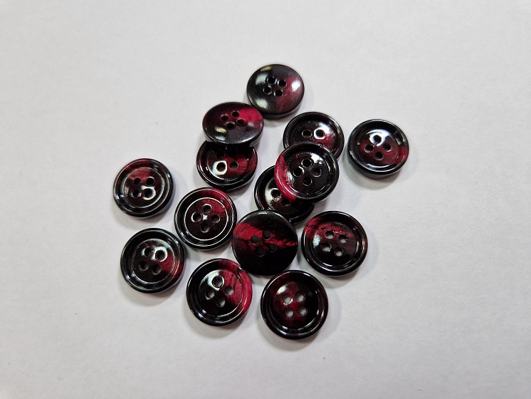 Пуговица пластик 4 прокола d-15мм бордовая с прожилками Арт. F-5959