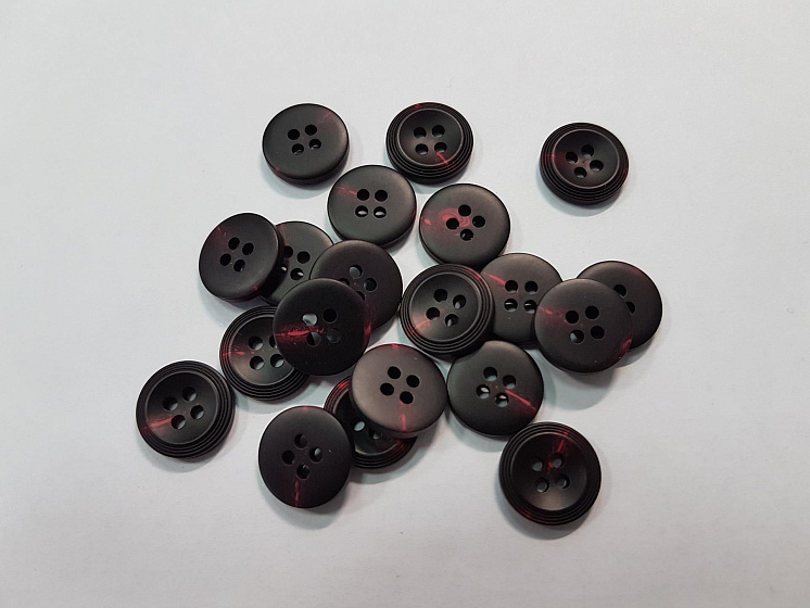 Пуговица пластик 4 прокола d-15мм черная с красными вкраплениями Арт. F-5385
